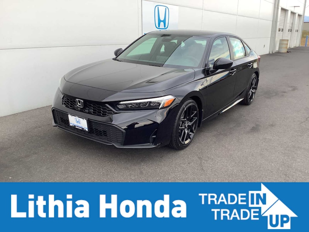 Crystal Black Pearl 2026 Honda Civic Sport FWD Black Artificial Leather.