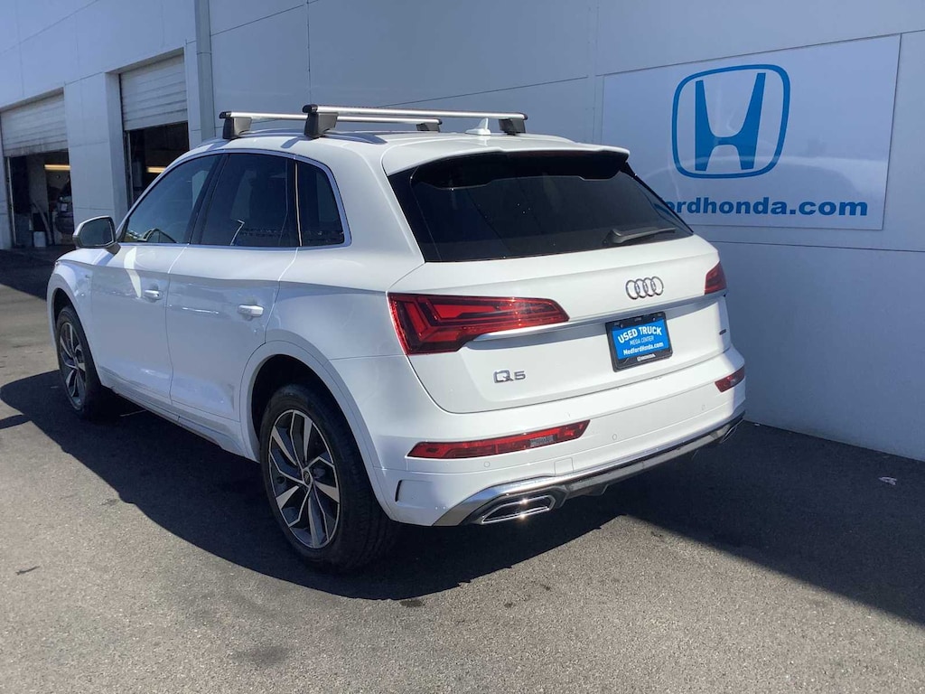 White 2024 Audi Q5 45 S line Premium quattro quattro 7-Speed Automatic S tronic Black Leather.